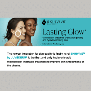 SKINVIVE by JUVÉDERM® Injectable Gel is an intradermal injection to improve facial skin smoothness of the cheeks in adults over the age of 21.